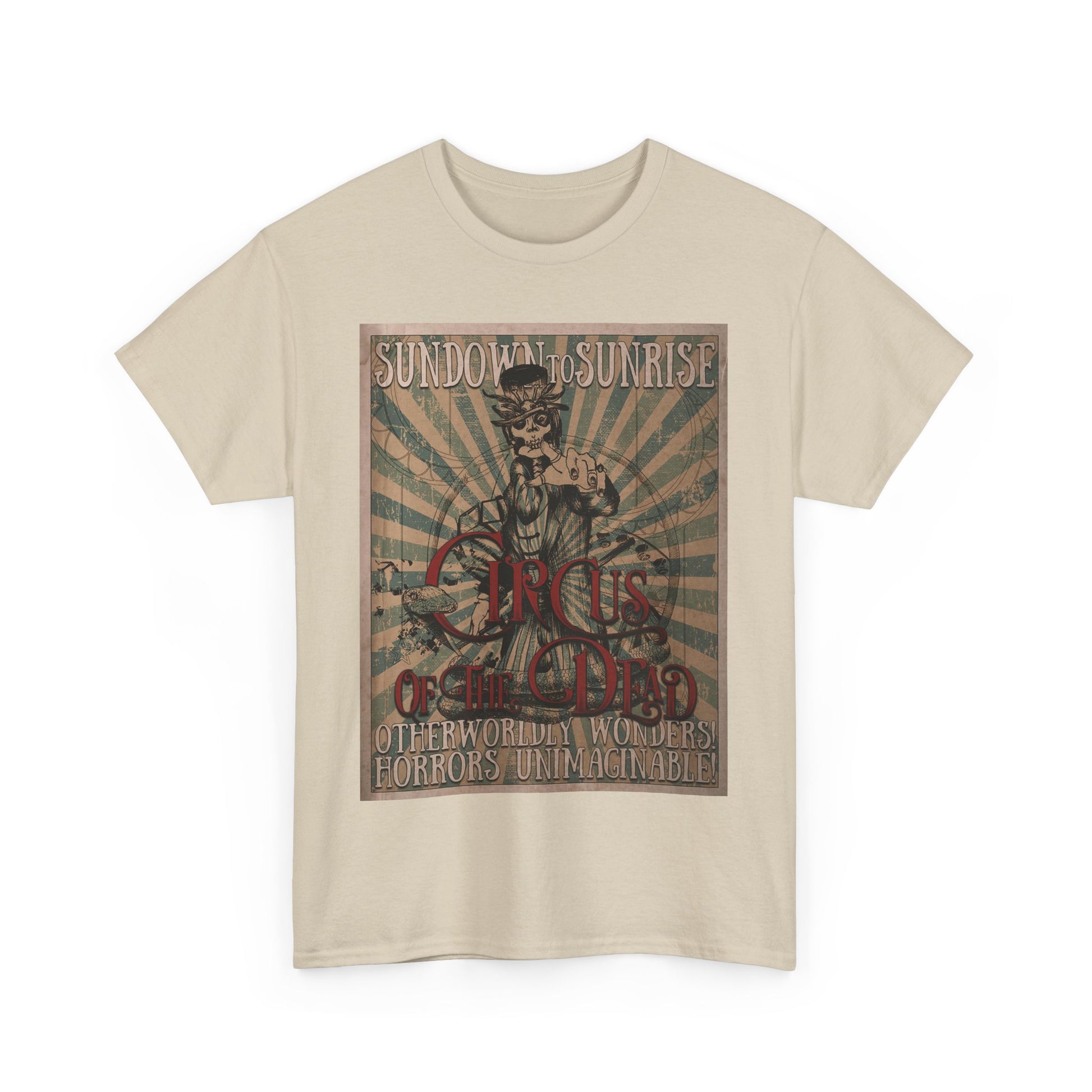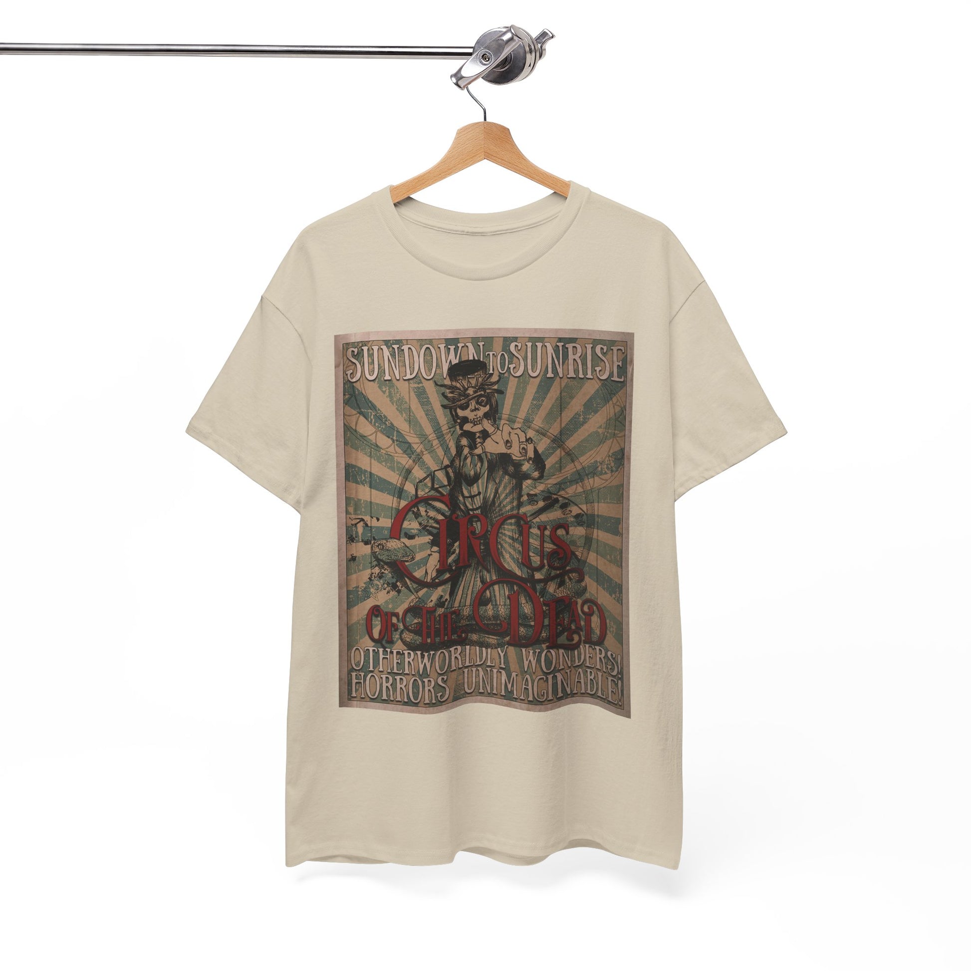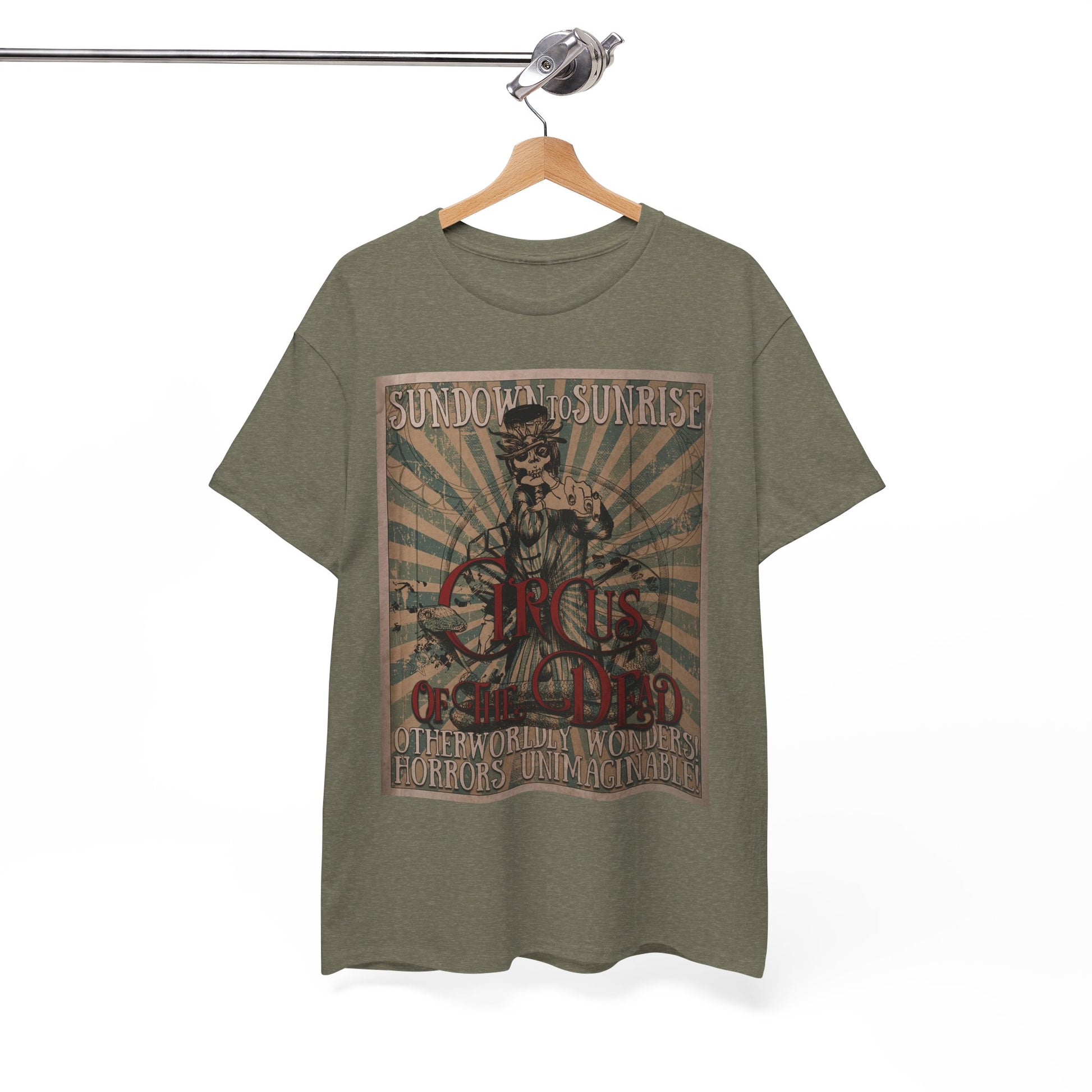Prepare for your trip to the Circus of the Dead with this comfy T-shirt in multiple colors.